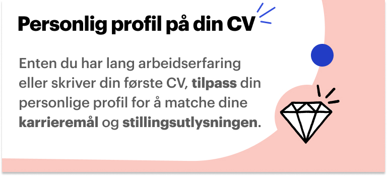 Viser at du har gjort research: En gjennomarbeidet personlig profil viser at du forstår både rollen og arbeidsgiveren. Det signaliserer at du har tilpasset søknaden til stillingen, og fremstår som en målrettet og bevisst kandidat.
