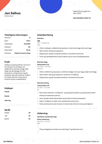 Se vår elektriker-CV-guide for hvordan du viser prosjektledelse, HMS-fokus og teknisk kompetanse i CV-en.